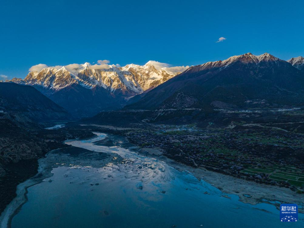 这是在索松村附近拍摄的南迦巴瓦峰(4月1日摄,无人机照片)。