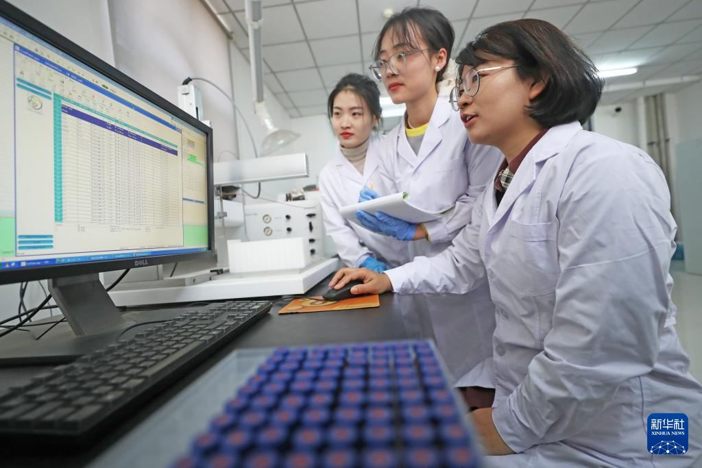 4月3日,在位于沈阳农业大学的土肥高效利用国家工程研究中心实验室,工作人员利用电感耦合等离子体发射光谱仪进行实验。