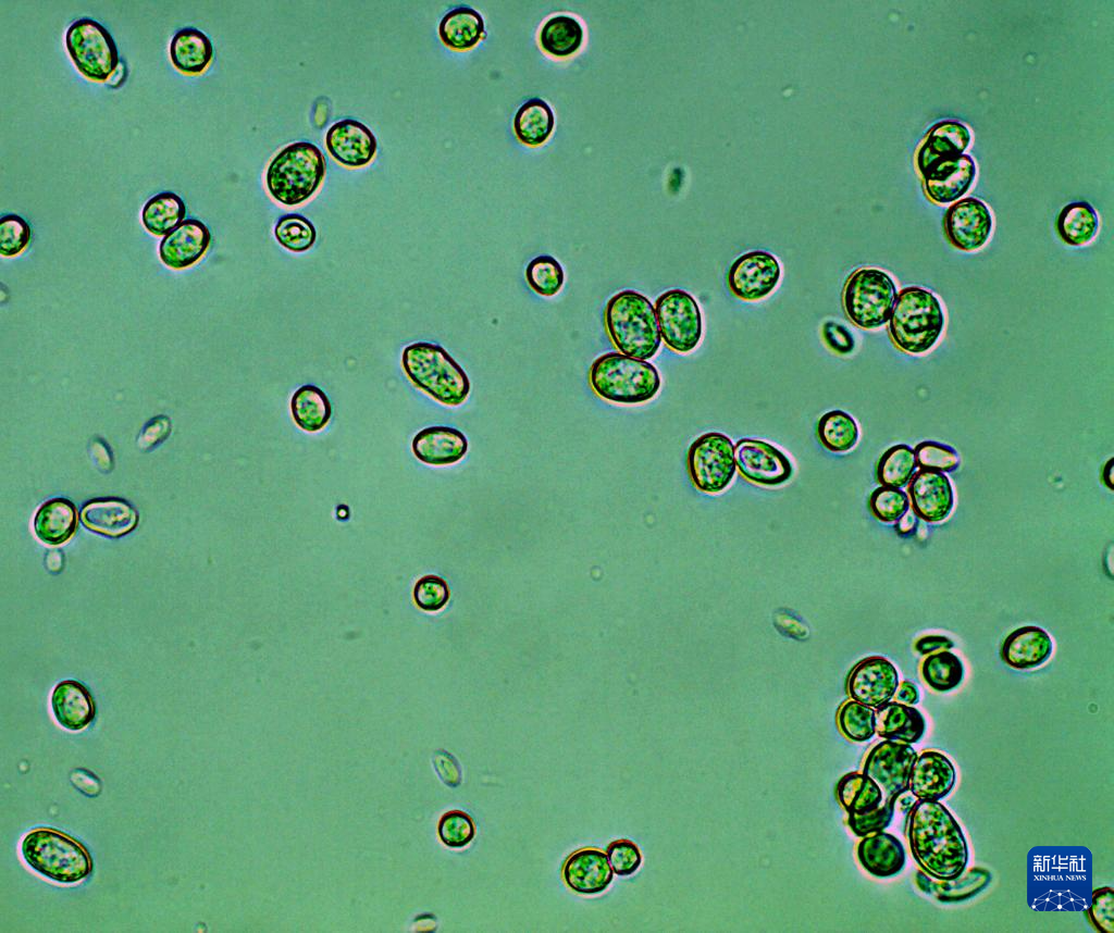 4月3日在沈阳农业大学土肥高效利用国家工程研究中心实验室拍摄的出芽短梗霉细胞(显微摄影)。