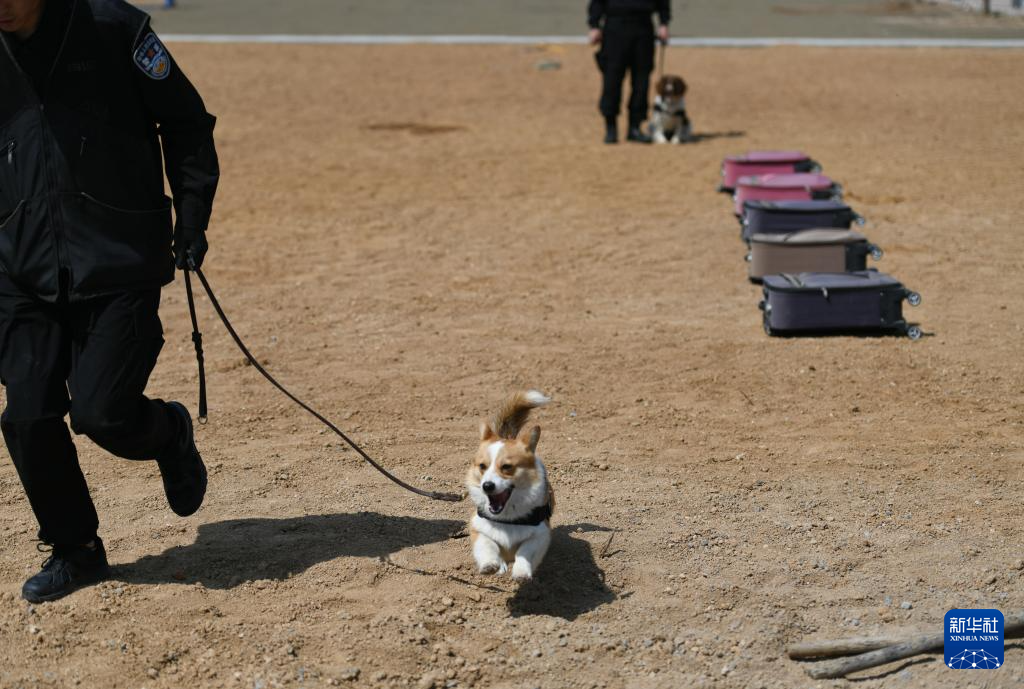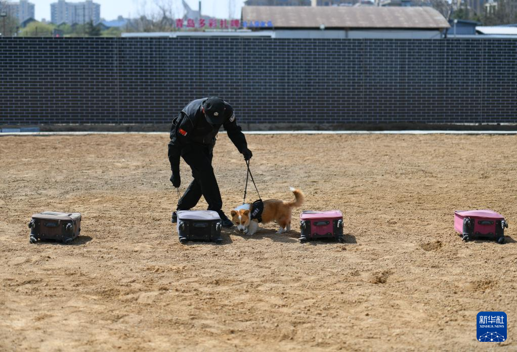 4月7日,“福仔”在进行气味搜索训练。