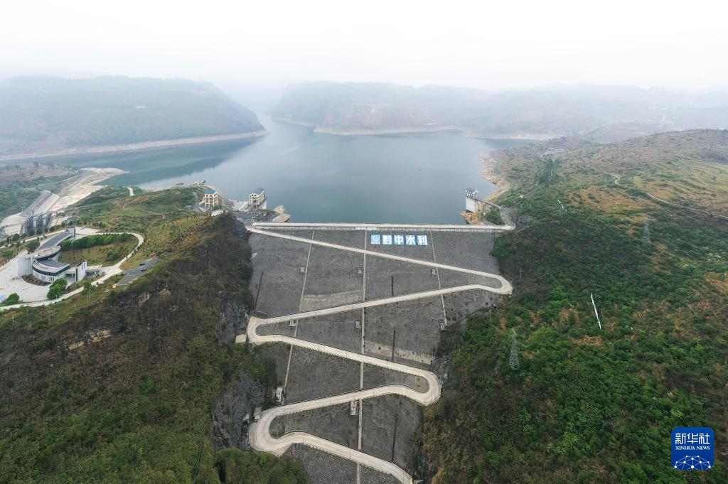 这是贵州省黔中水利枢纽一期工程平寨水库(4月9日摄,无人机照片)。