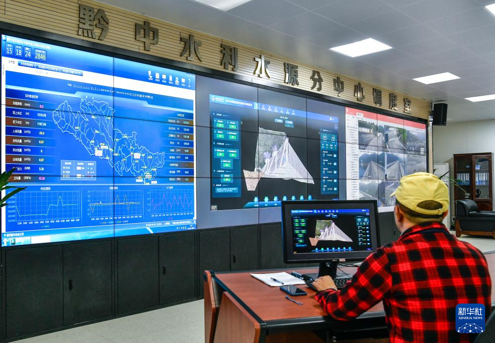 工作人员在贵州省黔中水利枢纽一期工程水源分中心调度室开展调度管理工作(4月9日摄)。