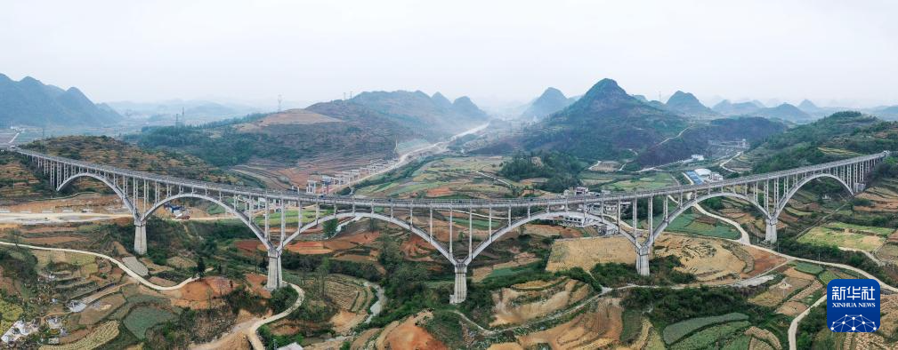 这是贵州省黔中水利枢纽一期工程青年队渡槽(4月9日摄,无人机照片)。