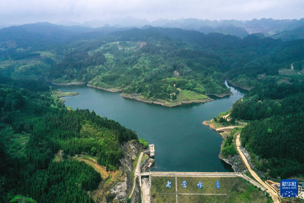 这是已建成的贵州省安顺市平坝区老营水库(4月10日摄,无人机照片)。