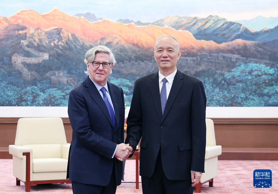 4月12日,中共中央政治局常委、中央书记处书记蔡奇在北京会见美国亚洲协会董事会联席主席桑顿。
