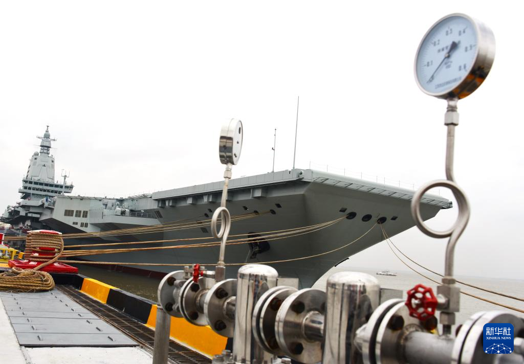 这是首航前靠泊在码头的福建舰(4月30日摄)。