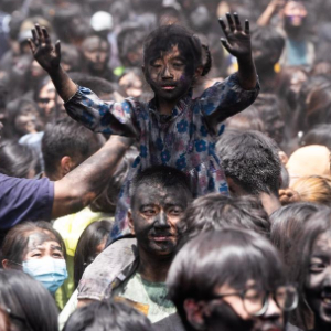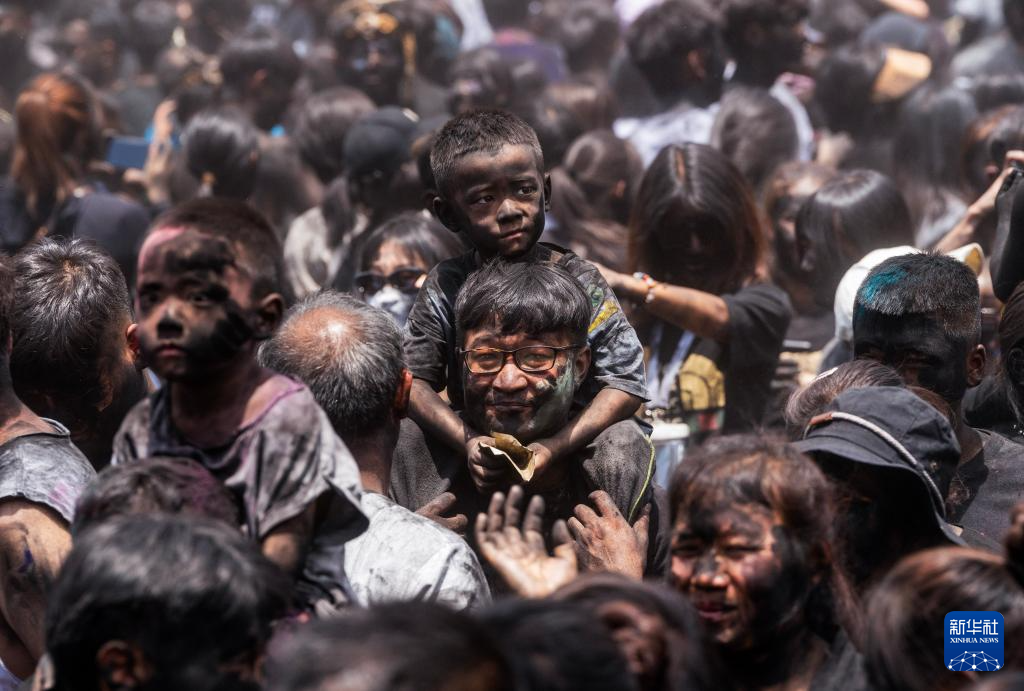 5月3日,民众在云南省墨江哈尼族自治县参加“抹黑脸”民俗活动。