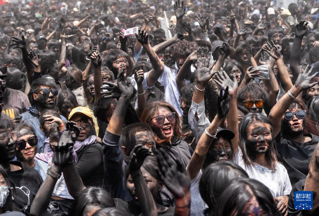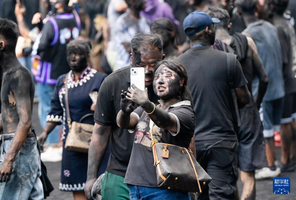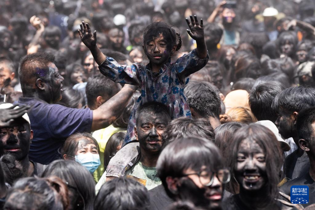 当日,云南省墨江哈尼族自治县举行第十八届墨江北回归线国际双胞胎节暨哈尼太阳节“抹黑脸”民俗活动,当地群众与来自各地的游客通过互相抹黑脸送祝福。“抹黑脸”是墨江当地的一种习俗,寄托美好祝愿。