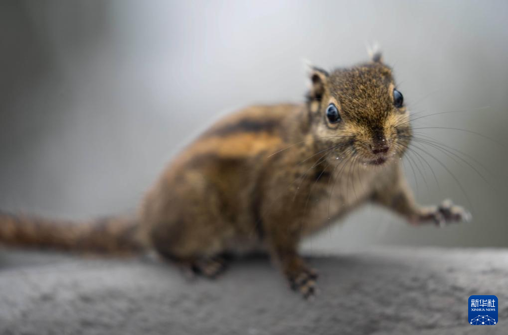 在瓦屋山景区兰溪绝壁栈道上,一只松鼠在觅食(5月11日摄)。