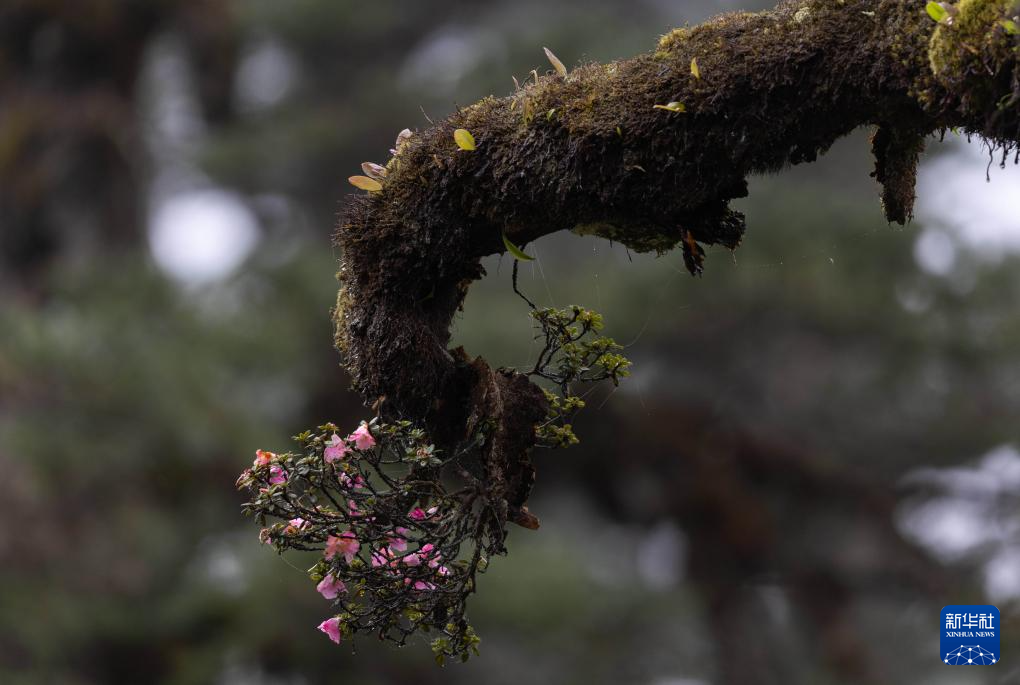 这是瓦屋山景区兰溪绝壁栈道旁的树枝上的寄生杜鹃花(5月11日摄)。