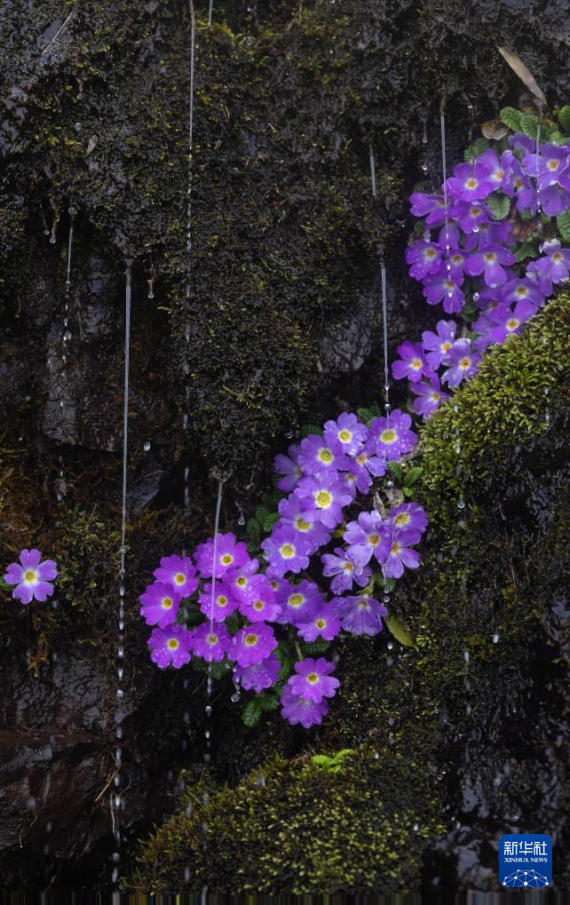 这是瓦屋山景区兰溪绝壁栈道旁盛开的卵叶报春花(5月11日摄)。