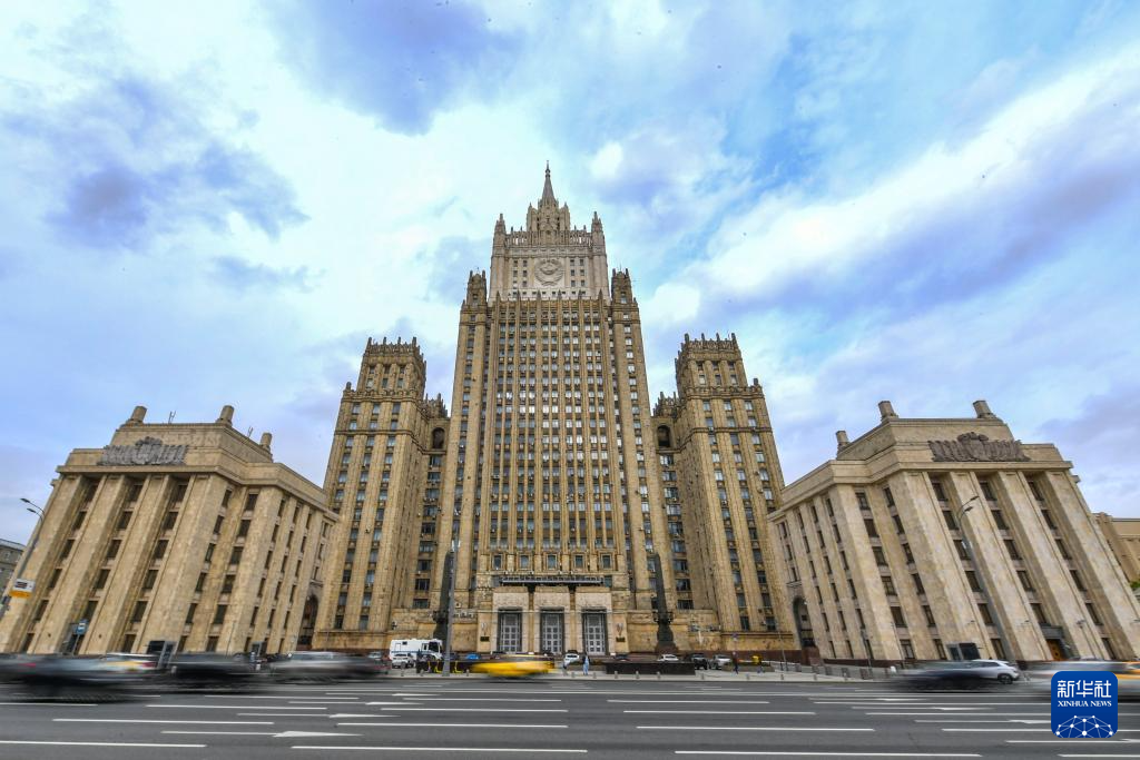 这是5月10日在俄罗斯首都莫斯科拍摄的俄外交部大楼。