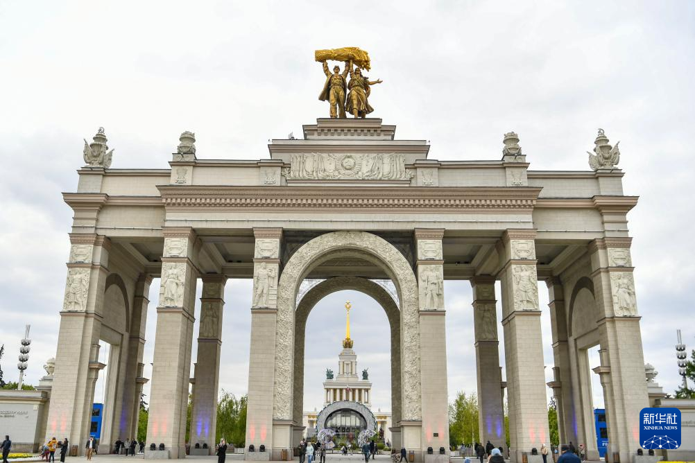 这是5月13日在俄罗斯首都莫斯科拍摄的国民经济成就展览馆。