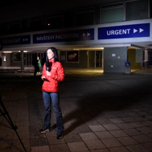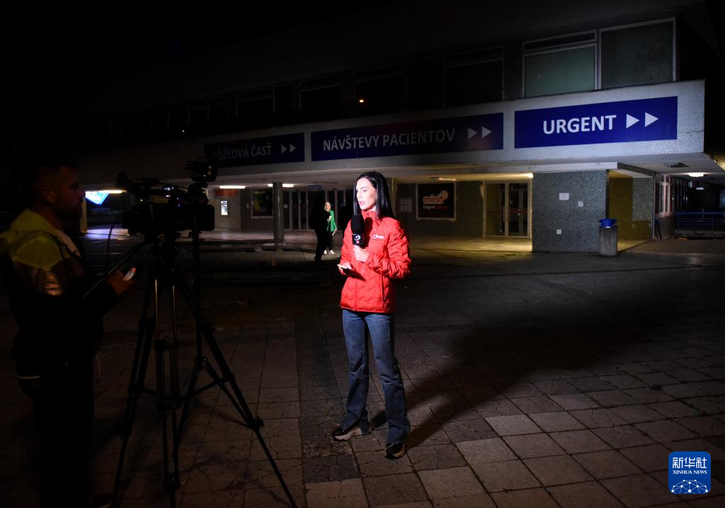 5月16日,媒体记者在斯洛伐克班斯卡-比斯特里察的一家医院外工作。斯洛伐克总理菲佐遭枪击后被送往该医院。