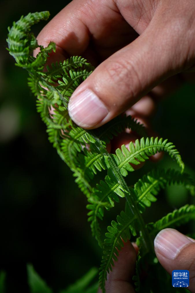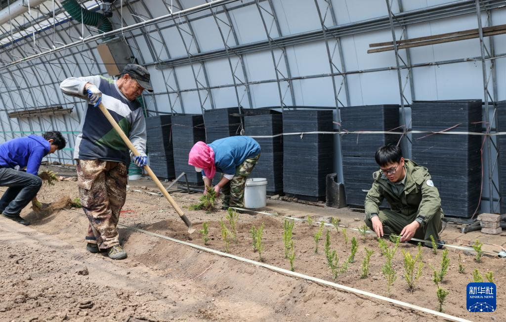 贾翔在长白山科学研究院育苗基地对国家重点保护野生植物进行人工扩繁(5月9日摄)。