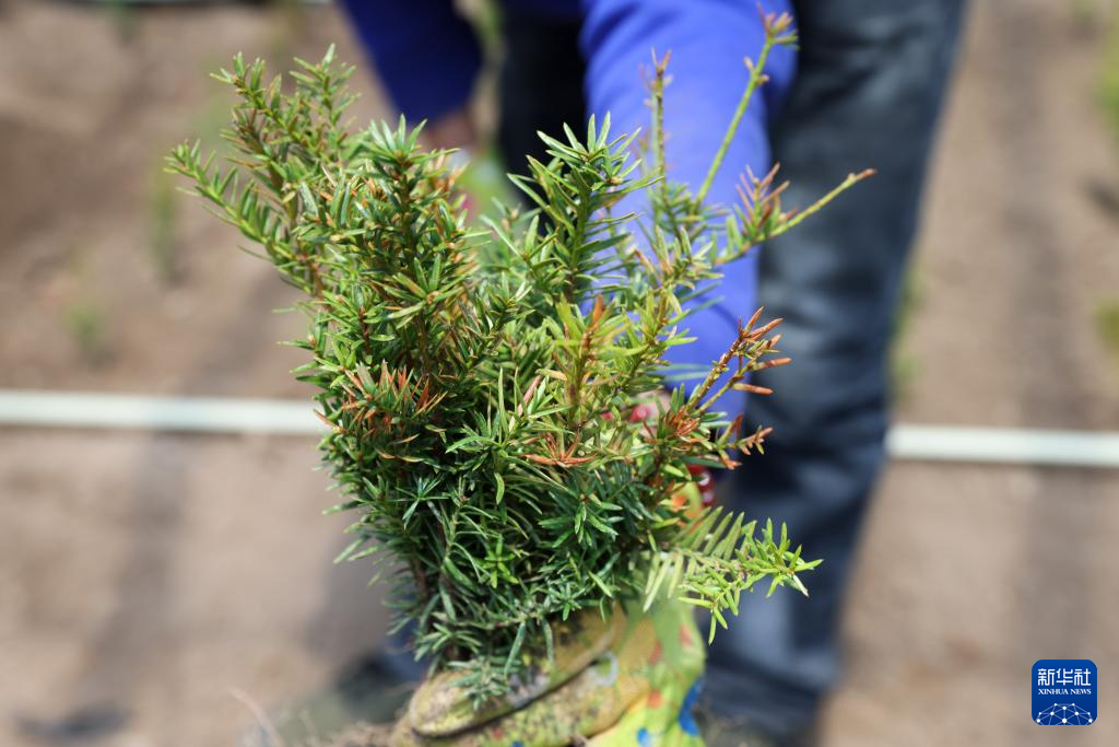 这是5月9日在长白山科学研究院育苗基地拍摄的东北红豆杉幼苗。
