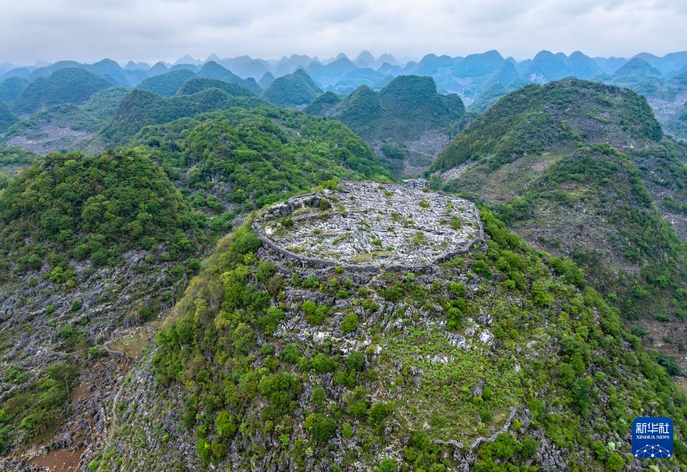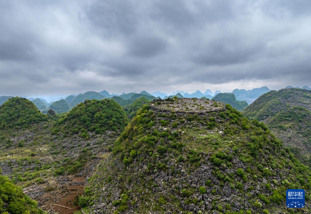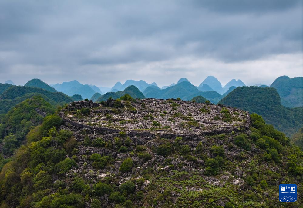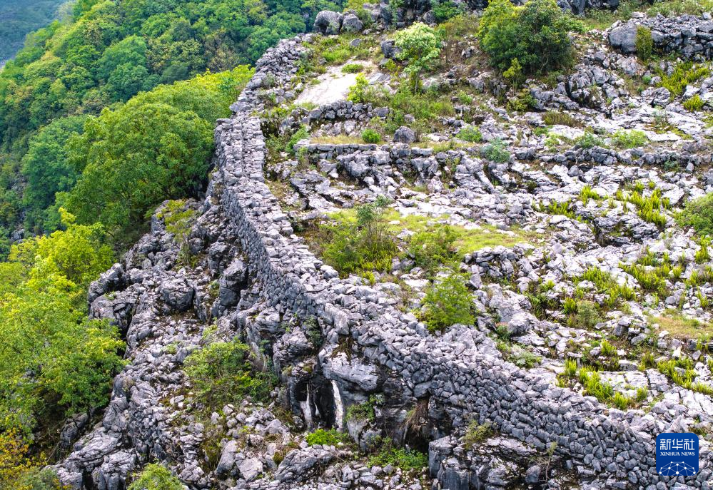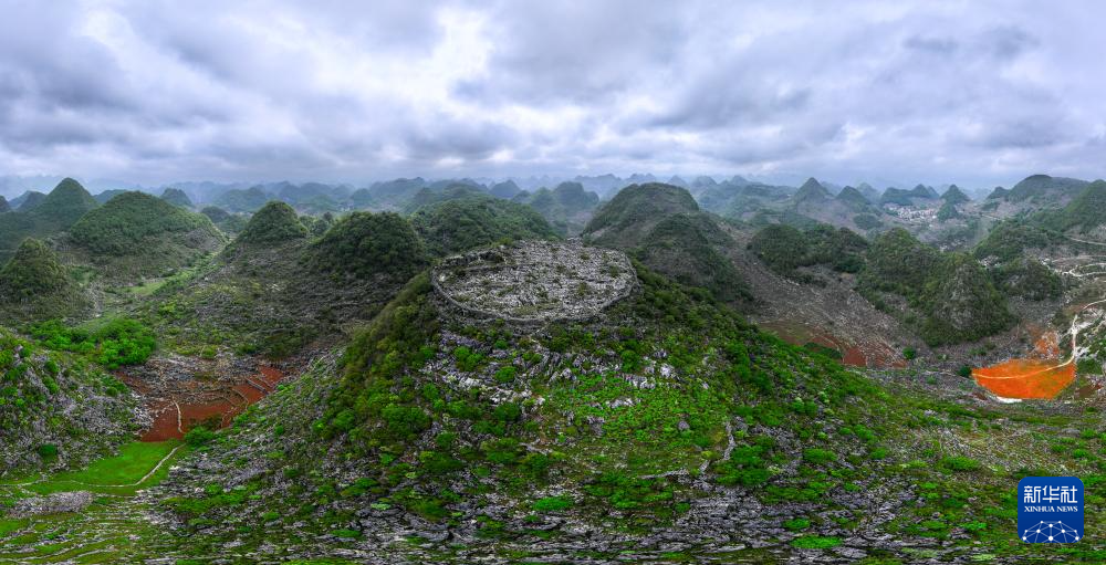 这是位于卢家营附近“消失”的山峰,山顶还留有防御营墙(无人机照片,5月16日摄)。