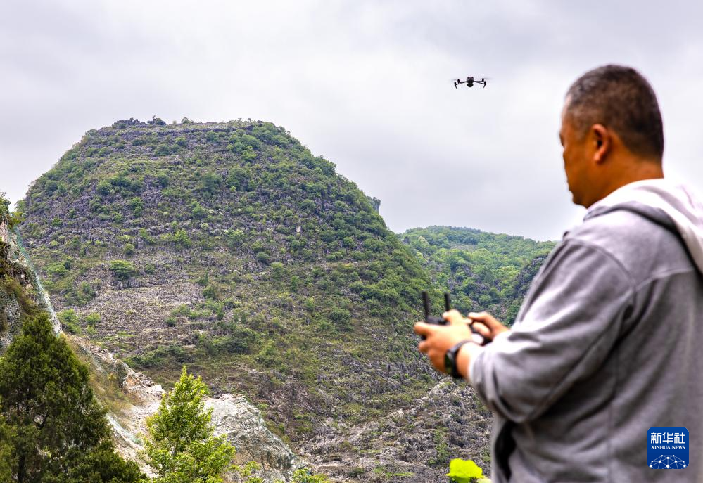 当地一名文物保护工作者在卢家营附近航拍(5月16日摄)。