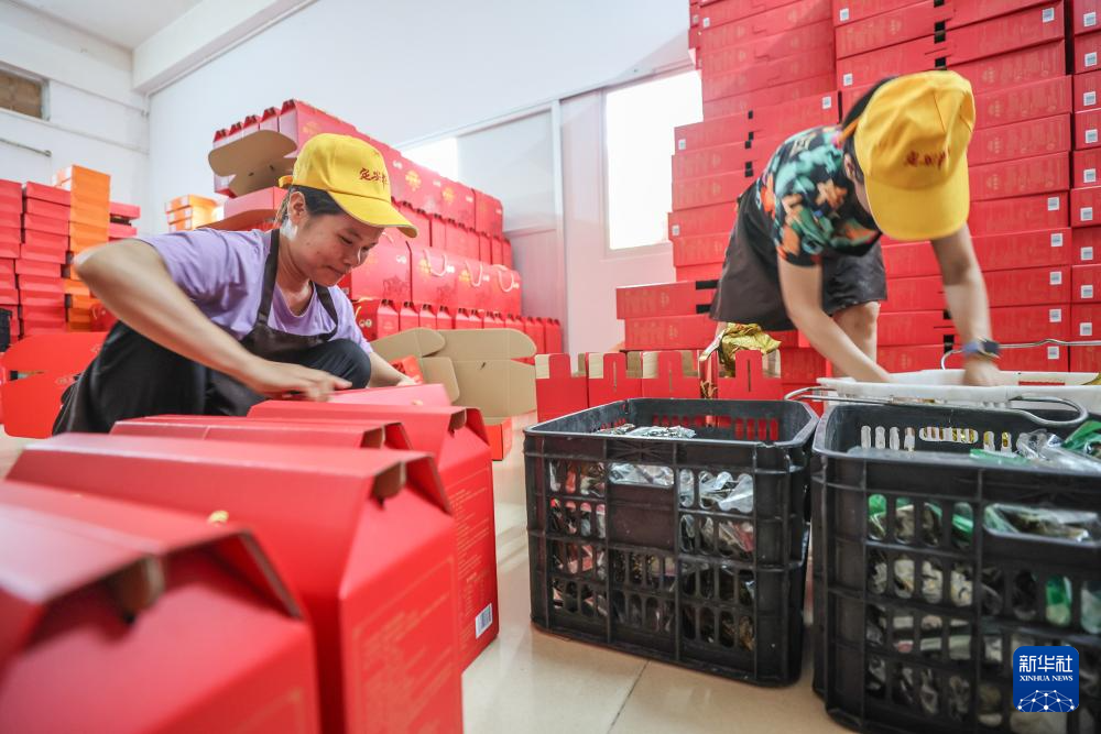 6月2日,海南定安新泰来食品有限公司的工人在整理粽子礼盒。