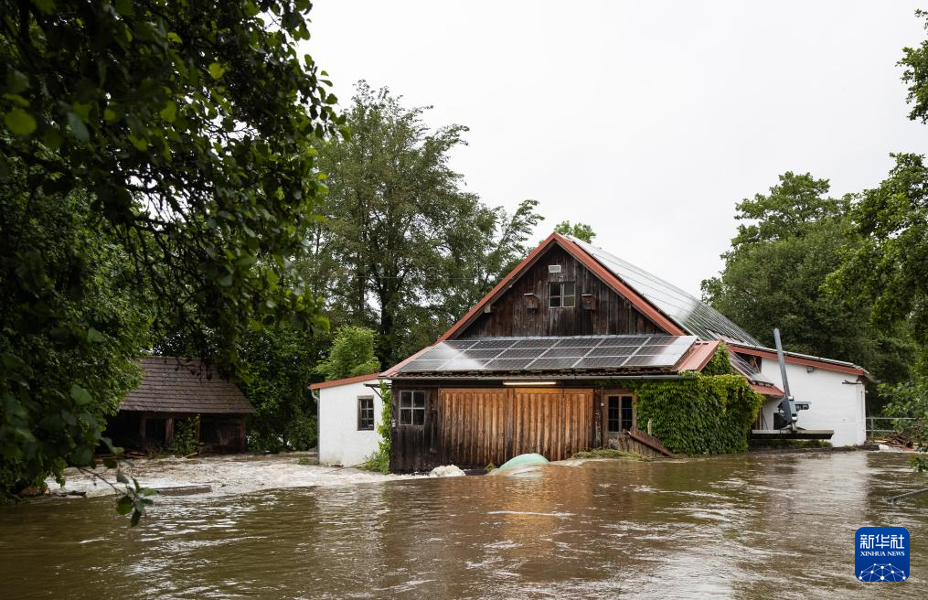 这是6月2日在德国巴伐利亚州巴本豪森拍摄的被洪水侵袭的房屋。