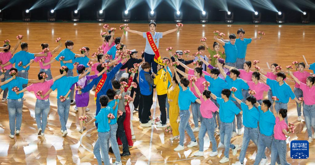 6月4日,演员在开幕式上表演歌舞《劳动赞歌》。