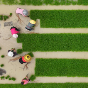 6月5日,云南省陇川县章凤镇农民在田里移栽水稻秧苗(无人机照片)。