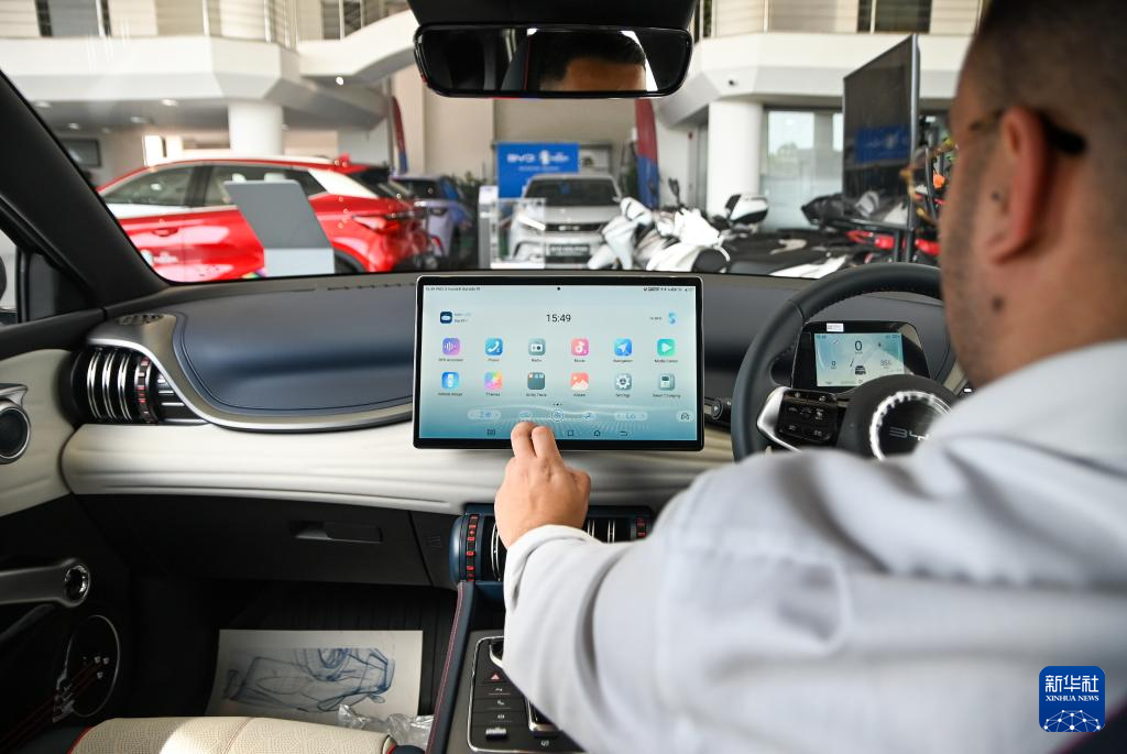 5月29日,在马耳他比尔基卡拉,一名男子坐在一辆比亚迪纯电动汽车上体验。