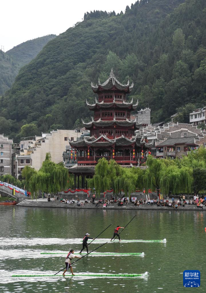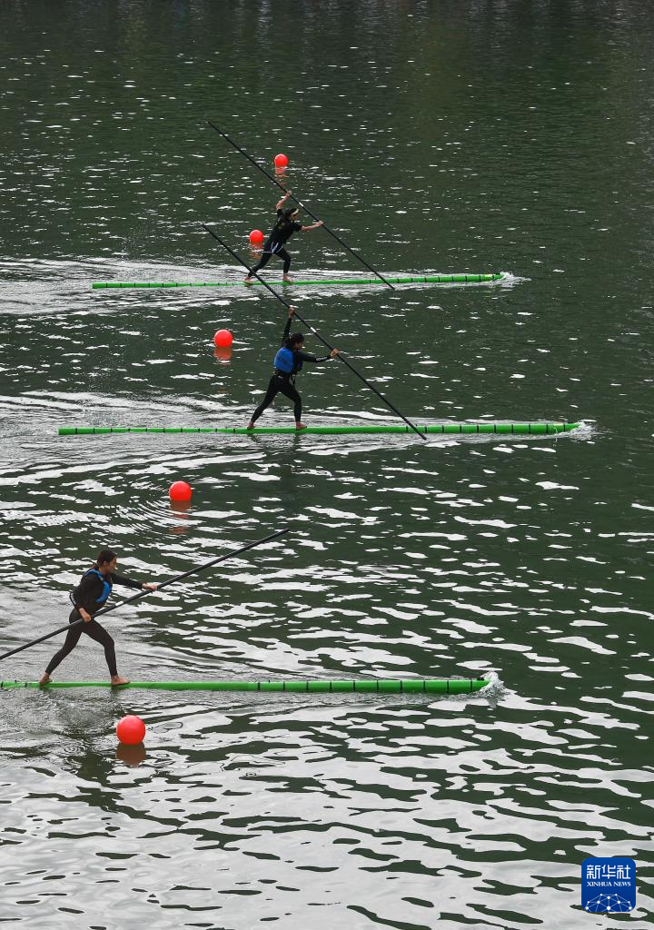 6月10日至12日,2024年民体杯全国龙舟、独竹漂比赛在贵州省镇远县举行。来自河北、云南、贵州、上海、广西、西藏、湖北的7支独竹漂队伍参加比赛,在青山绿水间比拼独竹漂。
