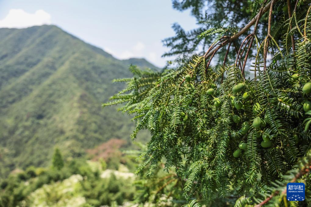 在位于建德市三都镇大唐村的香榧种植基地,香榧树上硕果累累。这是当地加工香榧油的原材料(6月15日摄)。