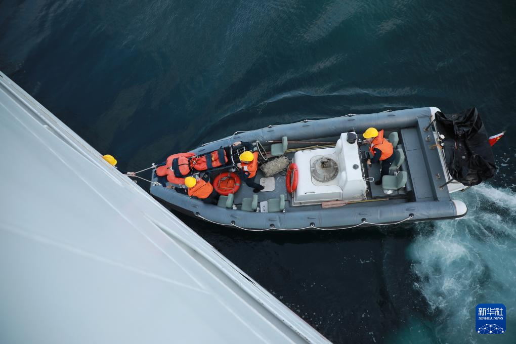 这是6月1日中国海军“和平方舟”号医院船起航前组织联合搜救训练。