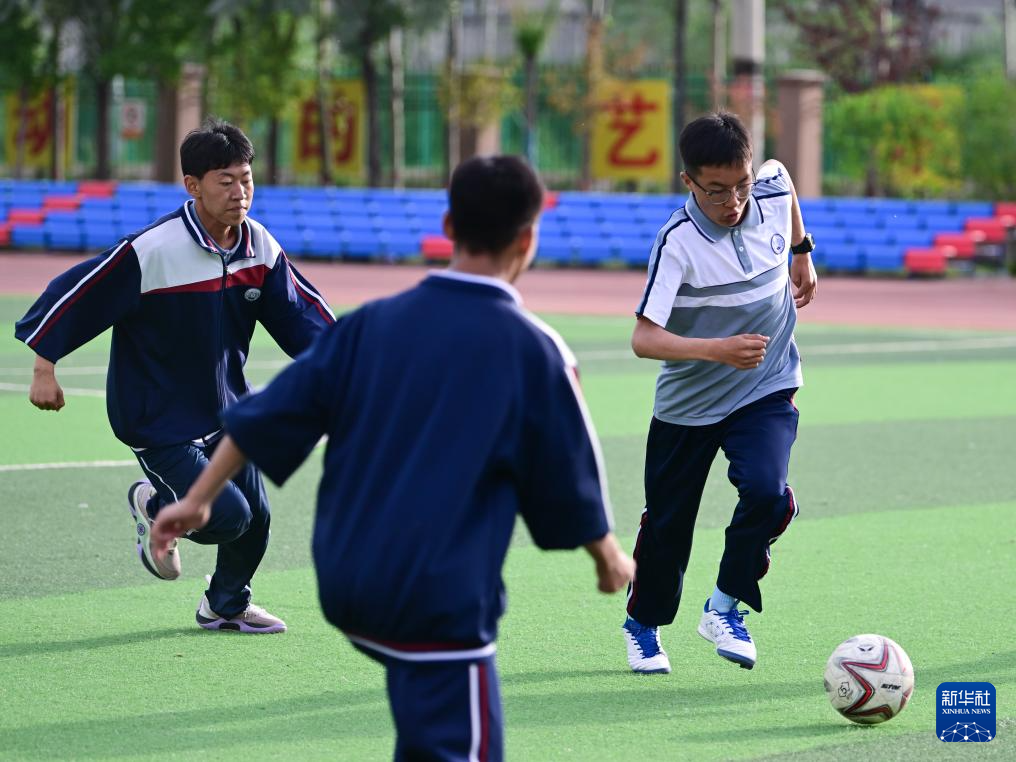 6月18日,上海援青教师阚延俊在给学生上音乐课。