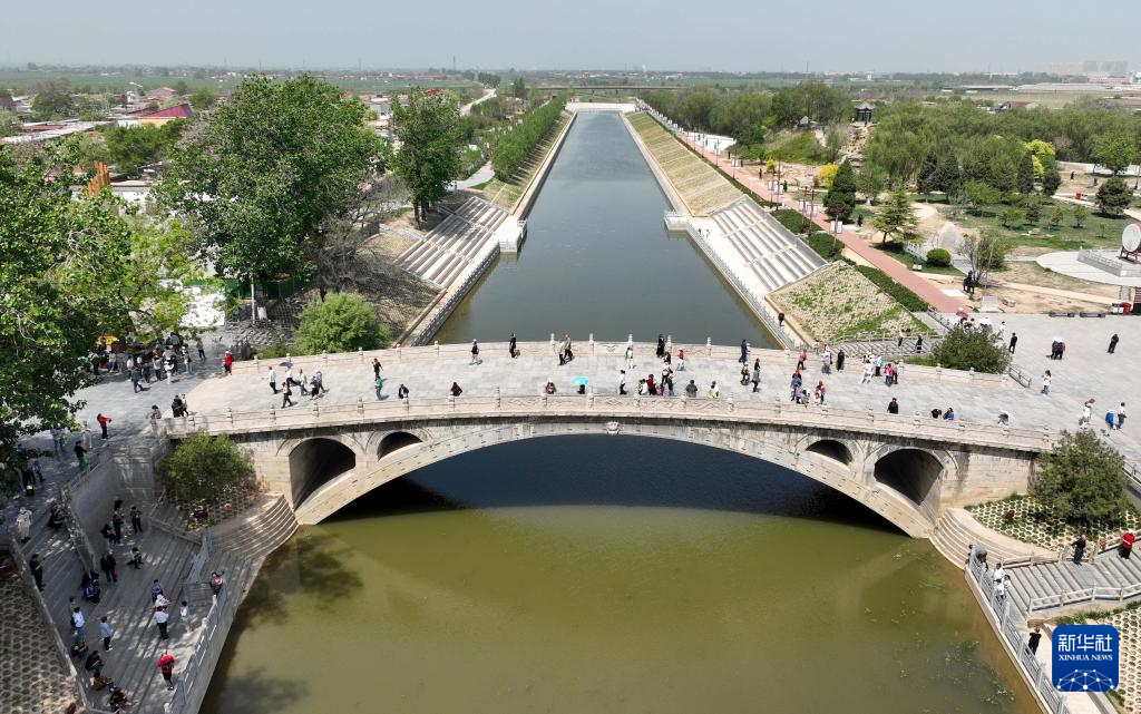 这是2024年4月25日,游客在赵州桥上游览(无人机照片)。赵州桥位于河北省石家庄市赵县洨河之上,全长64.4米,始建于隋代,距今已有1400多年历史,是世界现存最早、跨度最大的单孔圆弧敞肩石拱桥,与广东潮州广济桥、福建泉州洛阳桥、北京卢沟桥并称中国四大古桥。