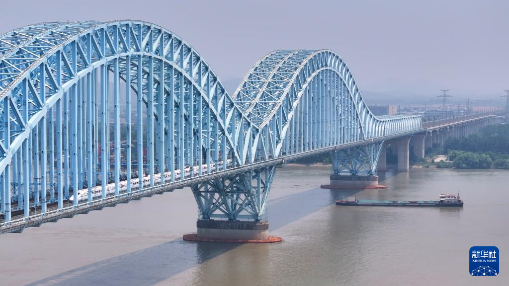 2024年6月15日,超级“环线”列车通过南京大胜关长江大桥。京沪高铁南京大胜关长江大桥于2011年建成通车。
