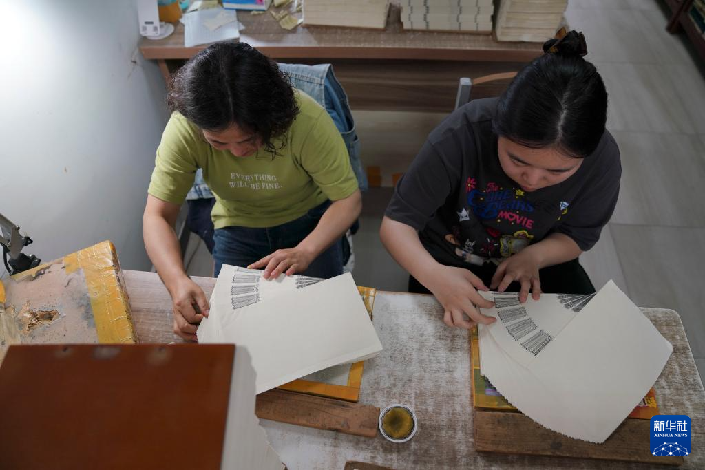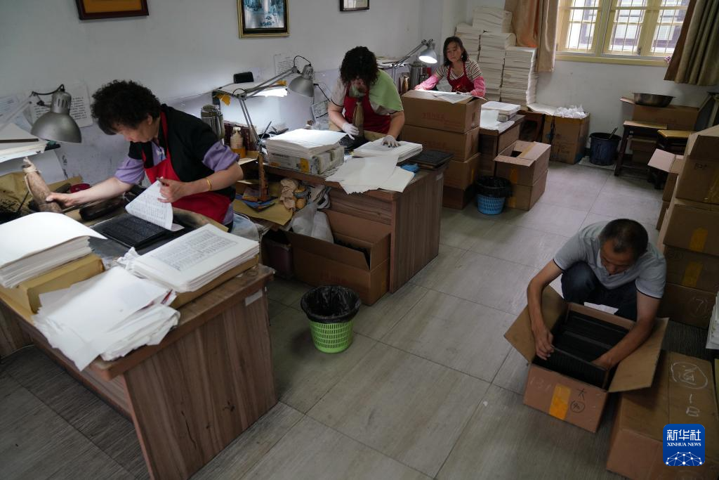 6月27日,在金陵刻经处技艺展示区,工作人员在印刷。