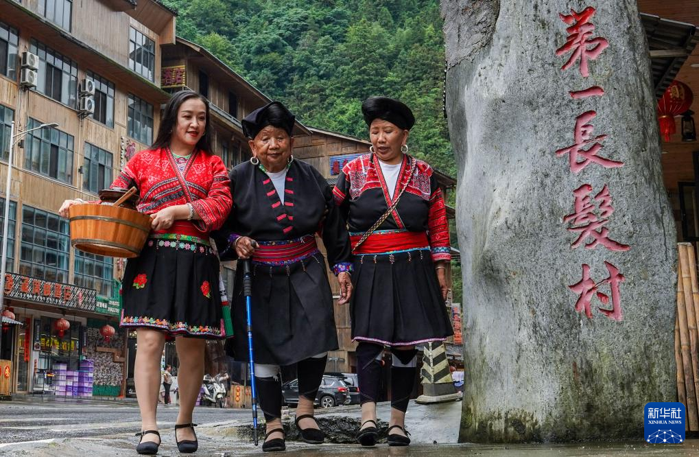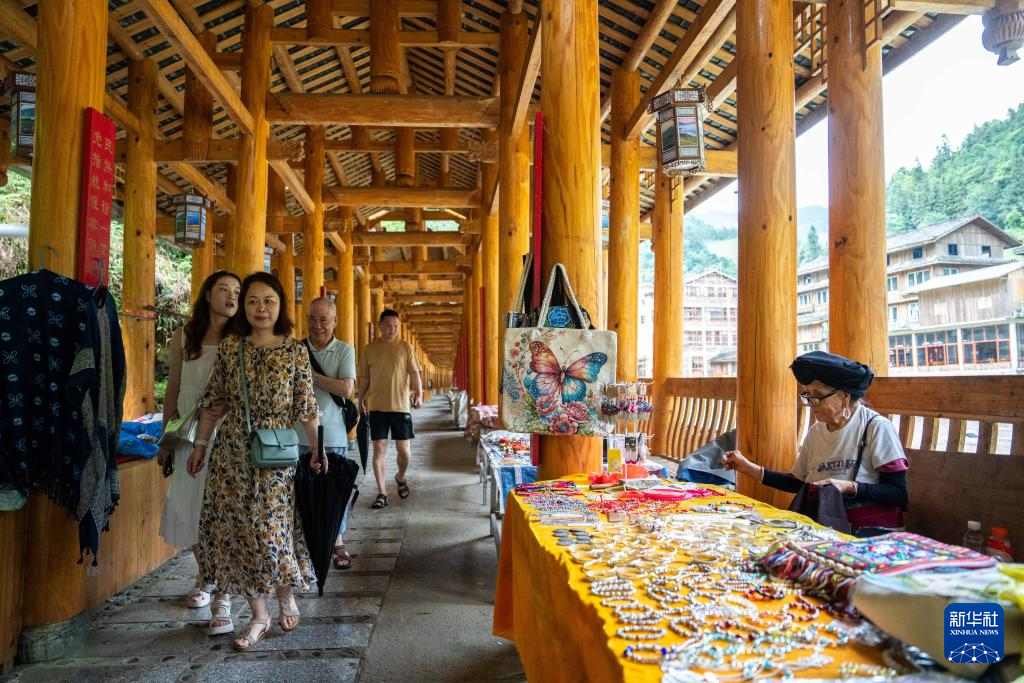 游客在黄洛瑶寨游玩(6月26日摄)。