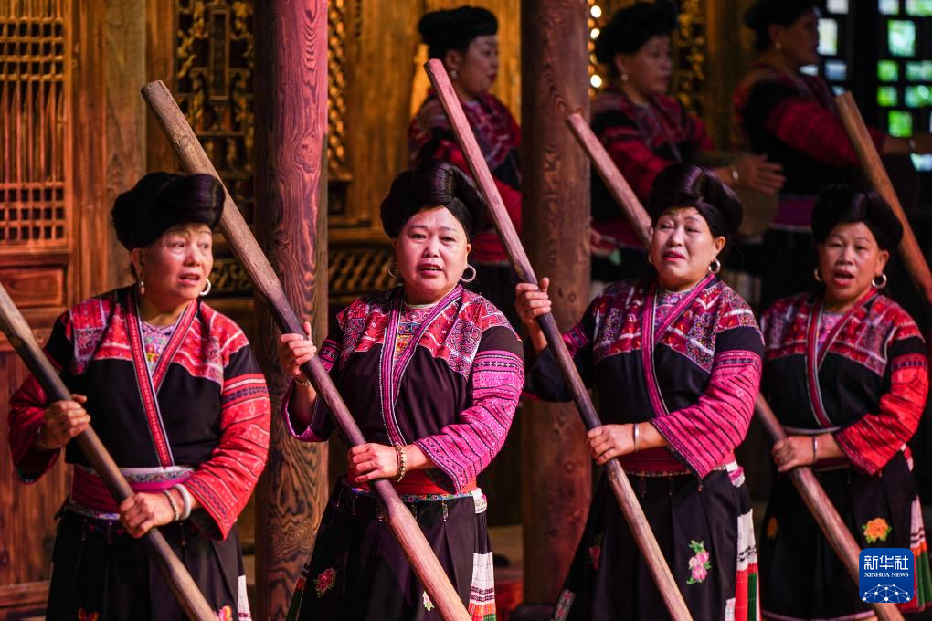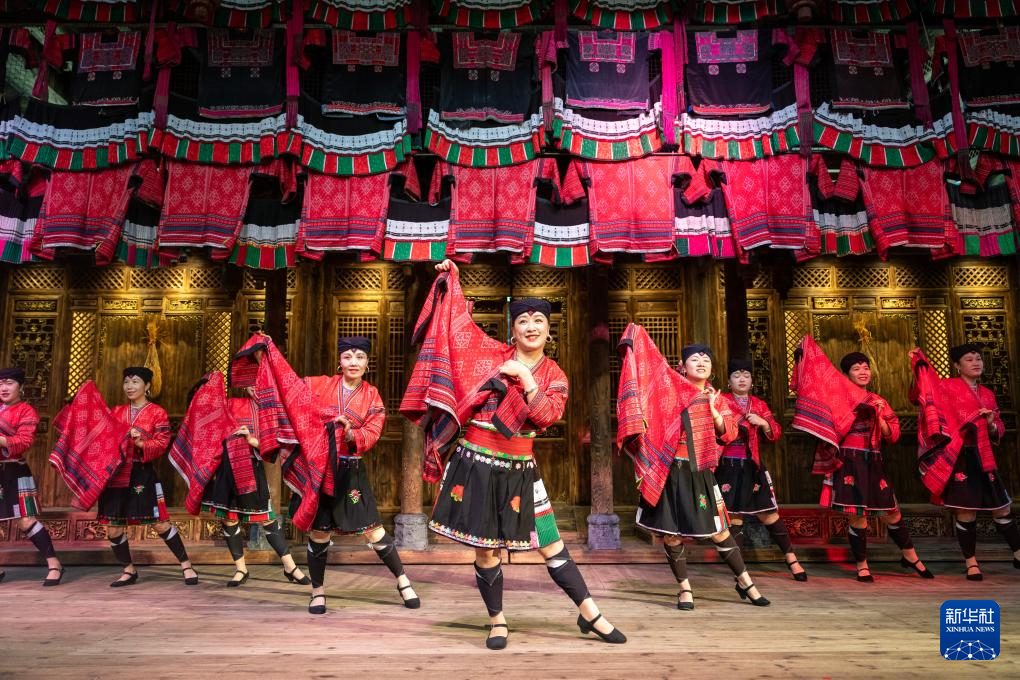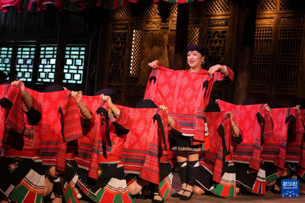 黄洛瑶寨村民演员在进行红瑶民俗文化表演(6月26日摄)。