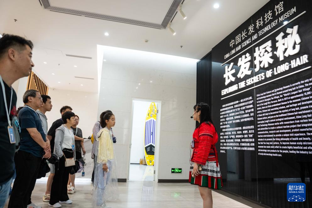 游客在黄洛瑶寨中国长发科技馆参观(6月26日摄)。
