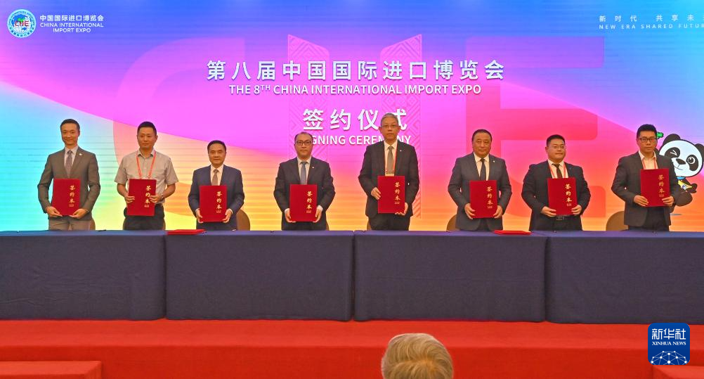 7月3日拍摄的第八届中国国际进口博览会签约仪式现场。