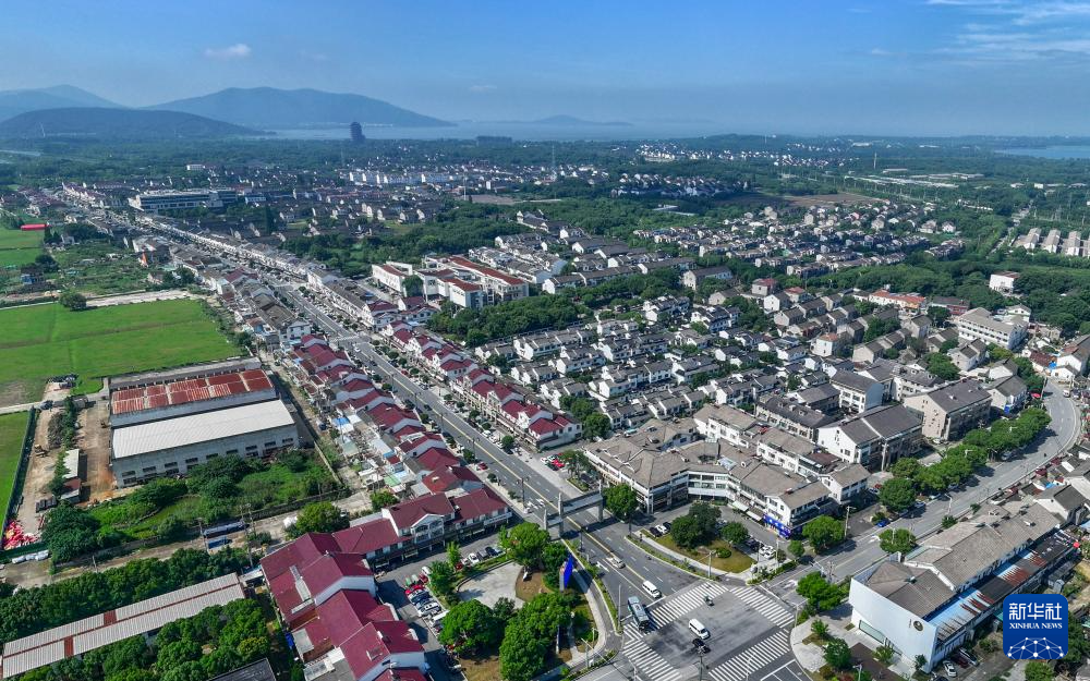 7月3日拍摄的苏州高新区镇湖街道苏绣小镇(无人机拼接照片)。