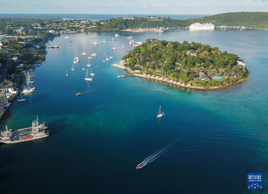这是6月28日拍摄的瓦努阿图首都维拉港风光(无人机照片)。