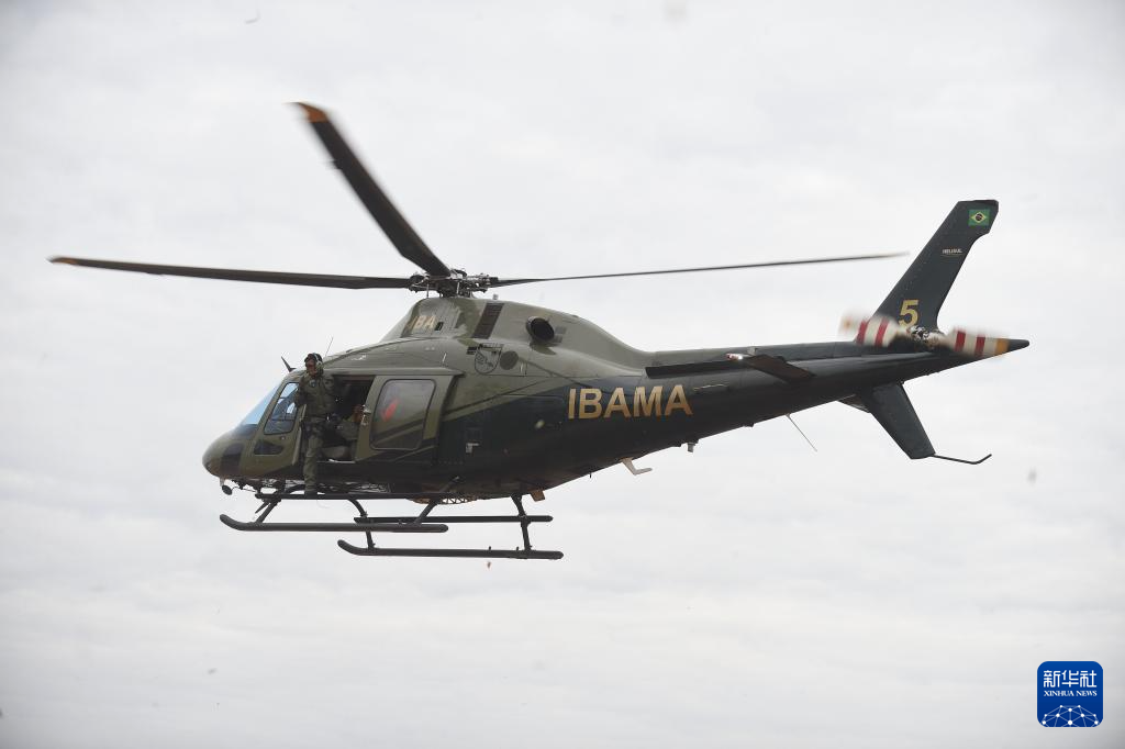 7月7日,消防员在巴西南马托格罗索州潘塔纳尔湿地乘坐直升机参加灭火行动。