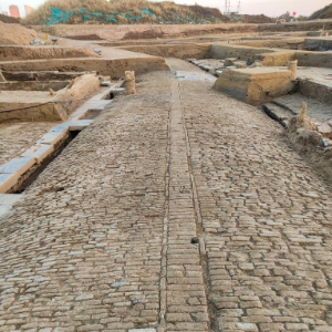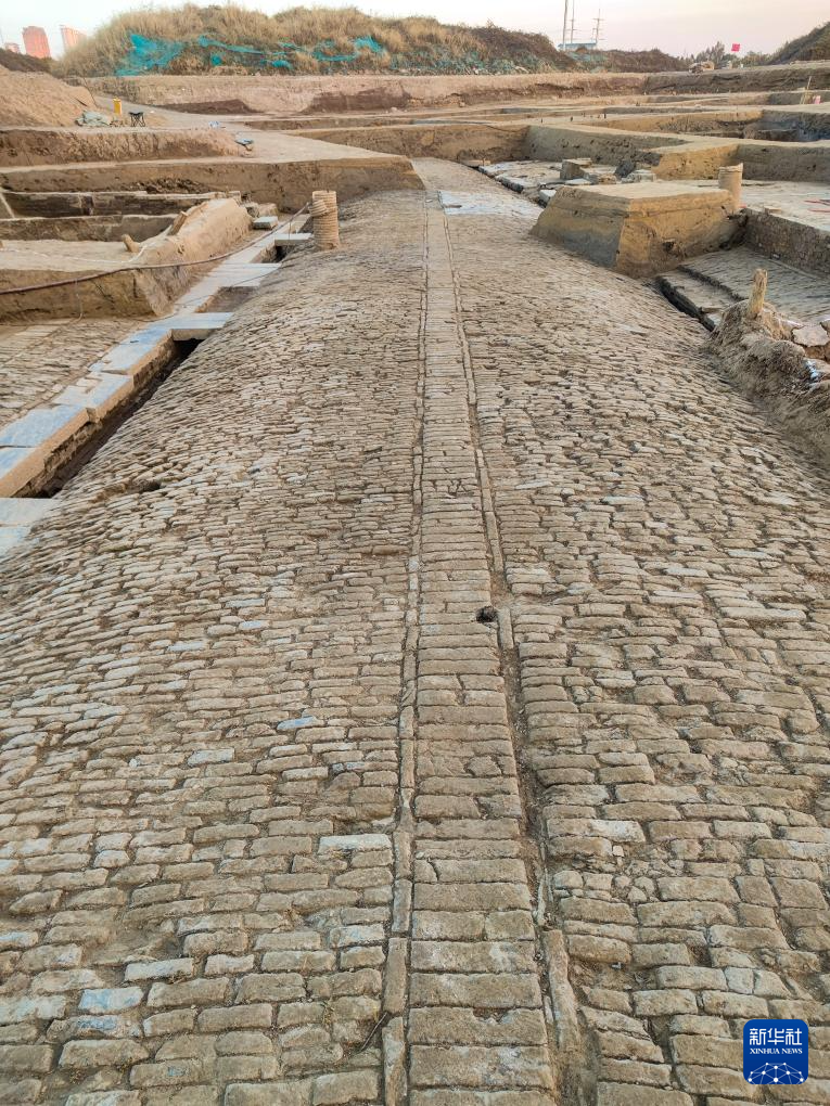 江苏淮安新路遗址内发现的“陈公新路”道路遗存(资料照片)。
