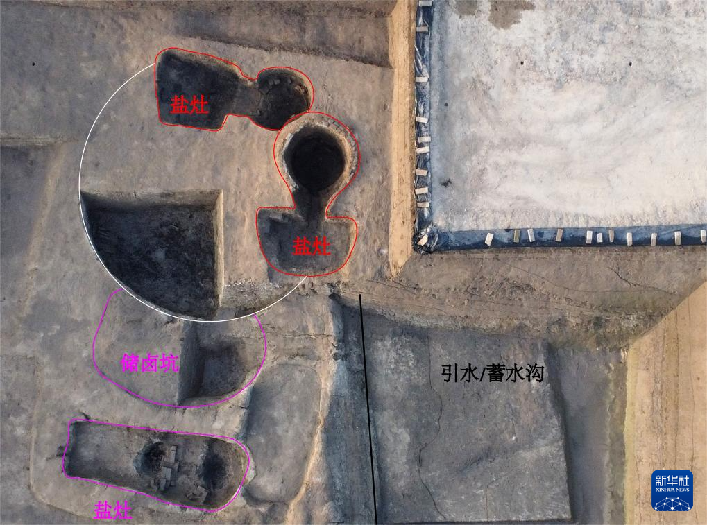 江苏盐城缪杭遗址出土的长条形储卤池(资料照片)。