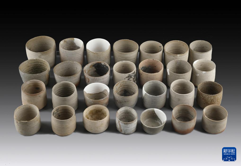 浙江绍兴稽中遗址出土的越国原始瓷杯(资料照片)。