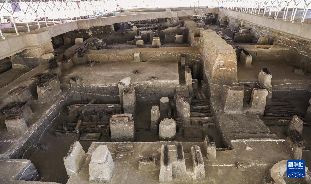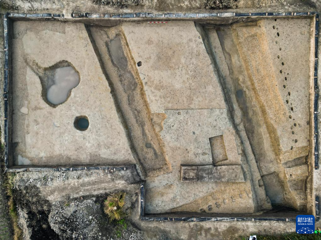 浙江绍兴稽中遗址出土的战国与汉代建筑基址遗迹(资料照片)。
