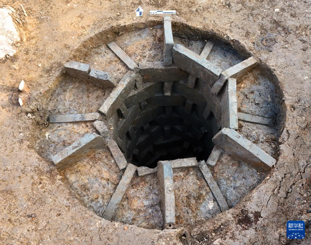浙江绍兴稽中遗址出土的六朝时期砖砌水井遗存(资料照片)。