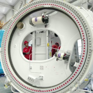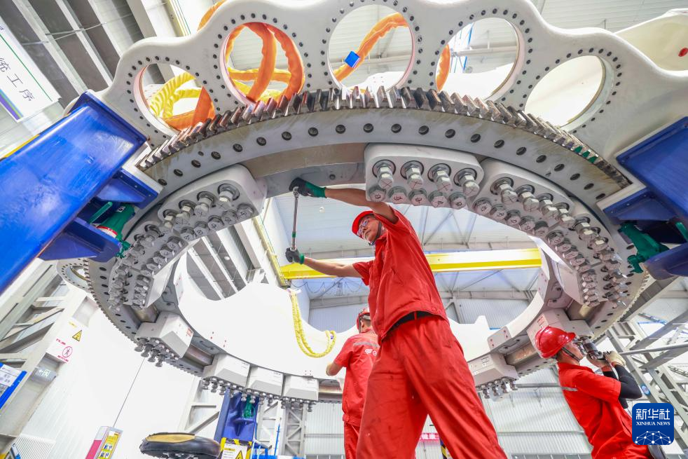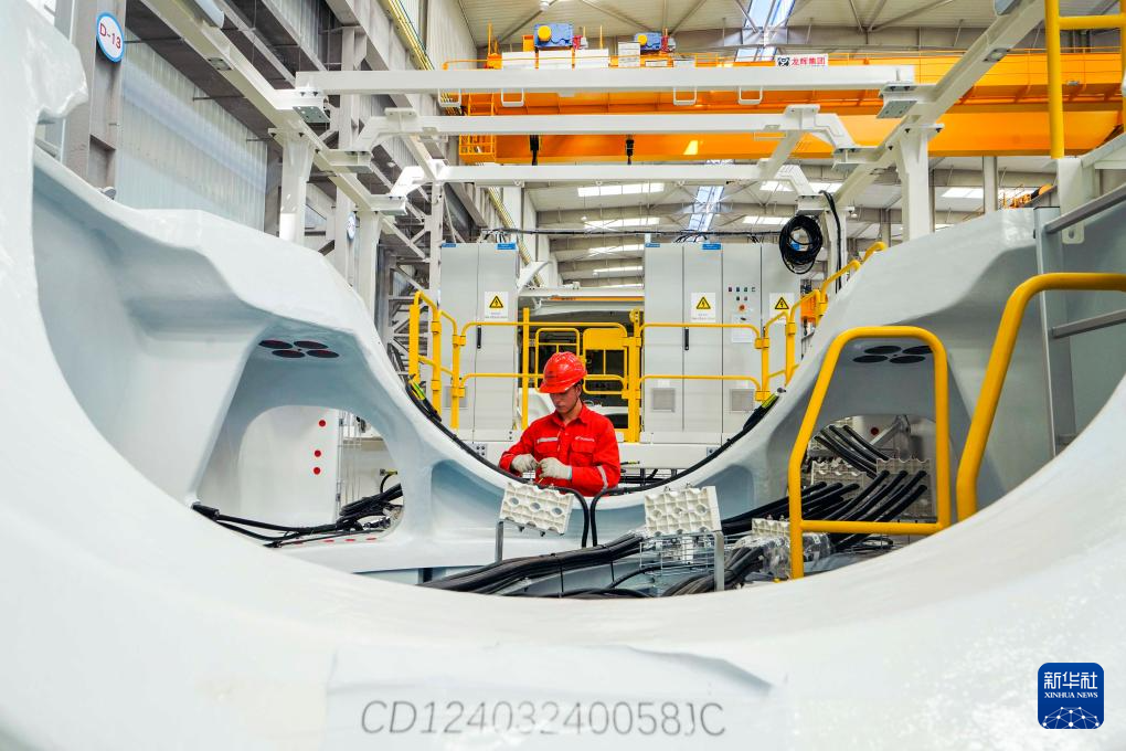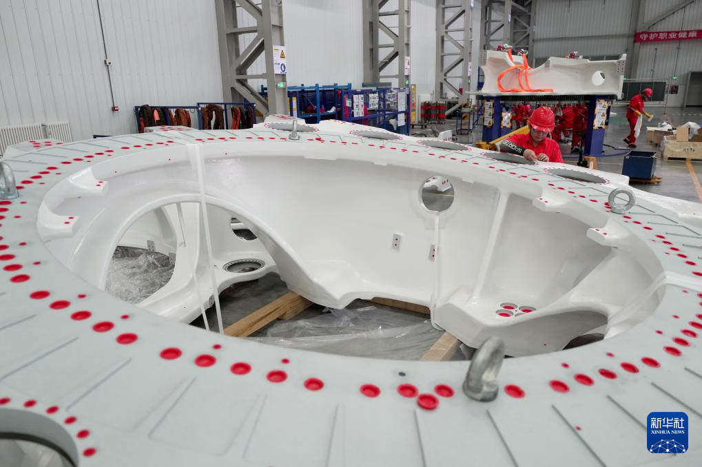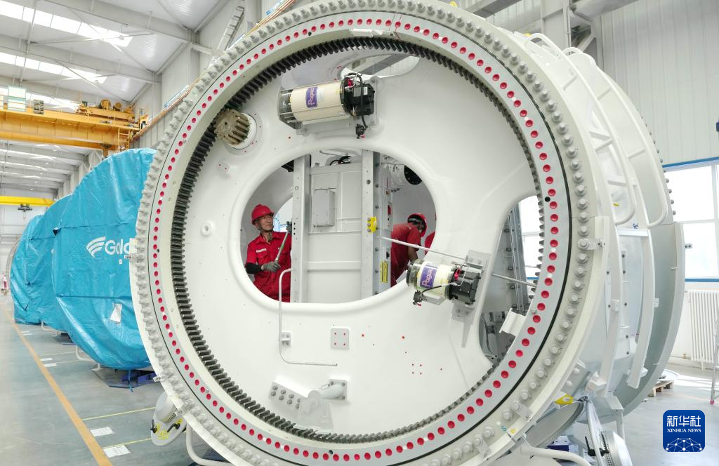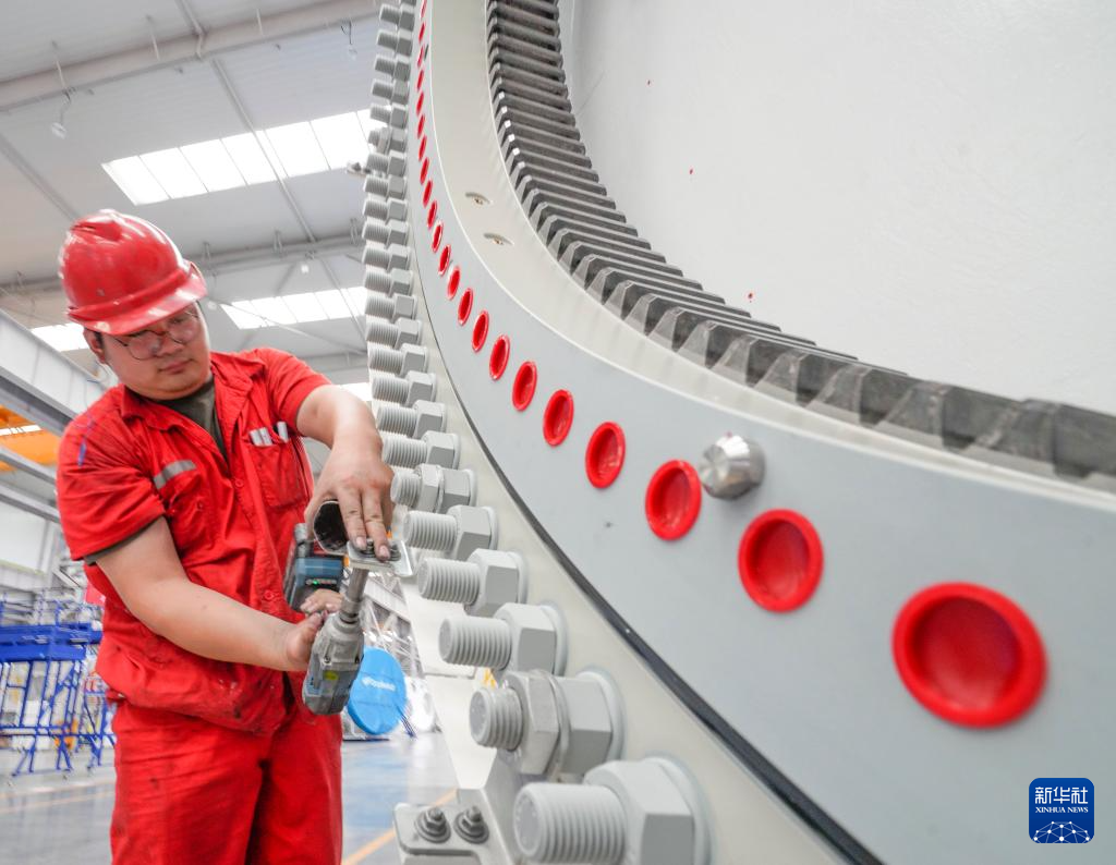 7月23日,工人在河北省隆化县一家风电设备企业的生产车间工作。