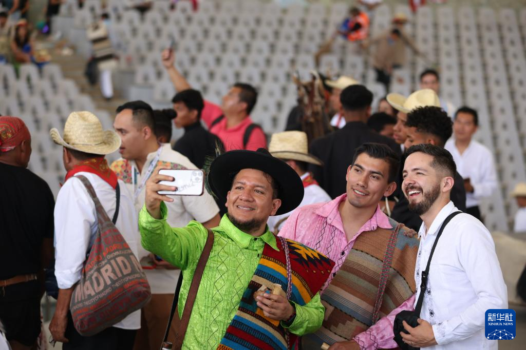 7月22日,在墨西哥瓦哈卡州瓦哈卡市盖拉盖查音乐厅,演员在表演后合影。