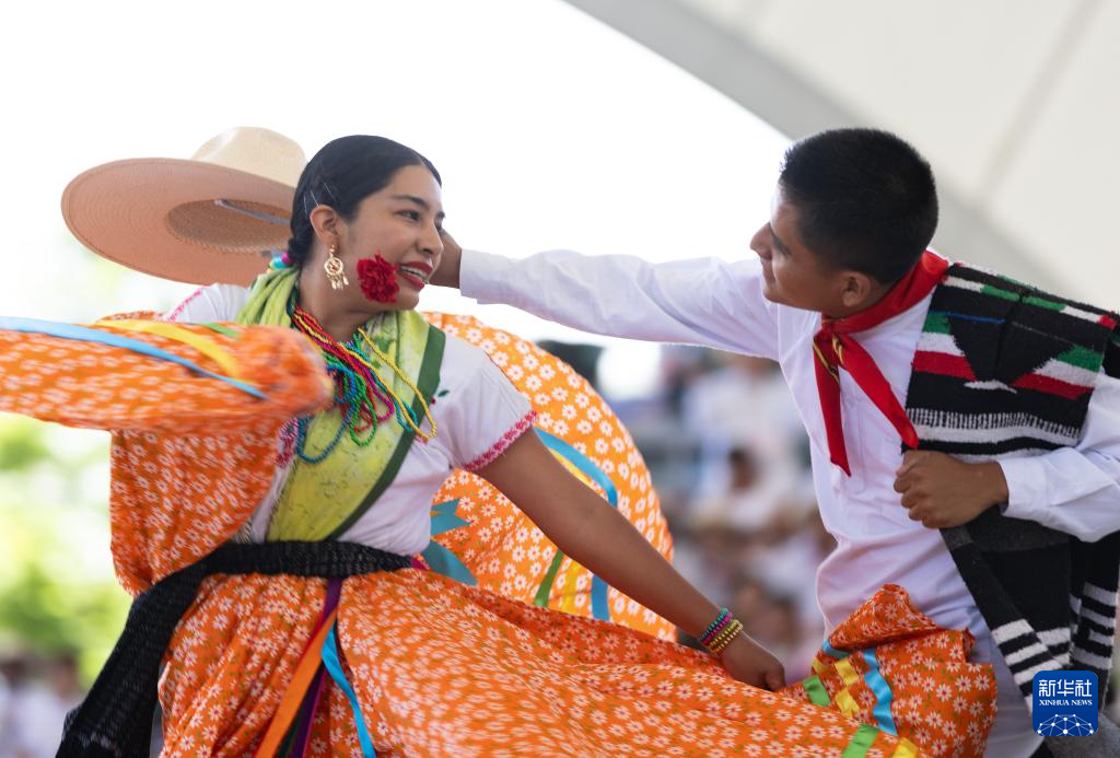 7月22日,在墨西哥瓦哈卡州瓦哈卡市盖拉盖查音乐厅,演员表演传统舞蹈。