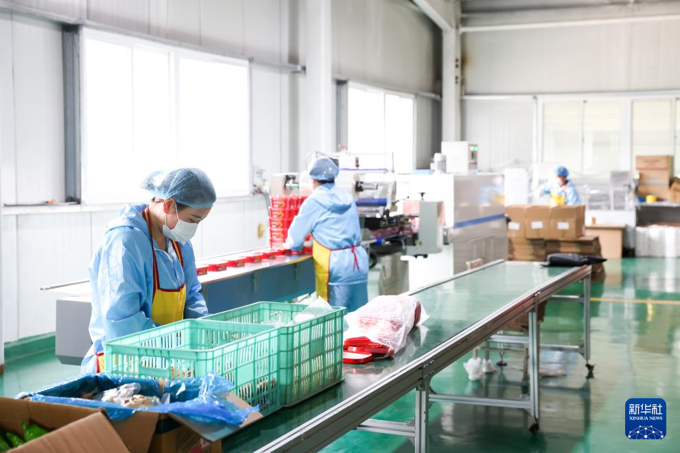 7月22日,在天水市秦州区一家农业企业,工人在麻辣烫方便食品生产线上作业。